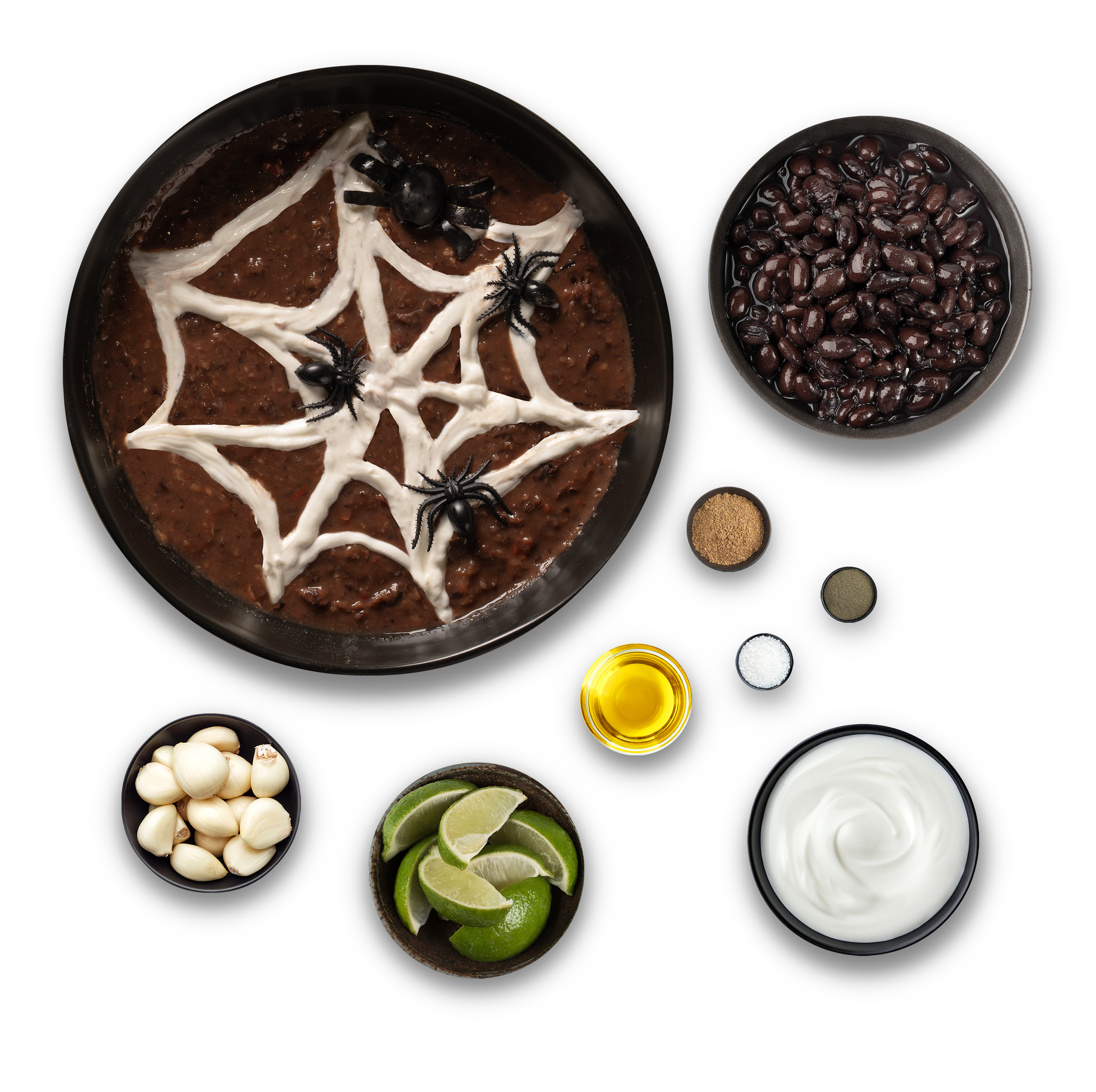 Blend black beans, garlic, lime juice, cumin, olive oil, salt, and pepper until smooth.